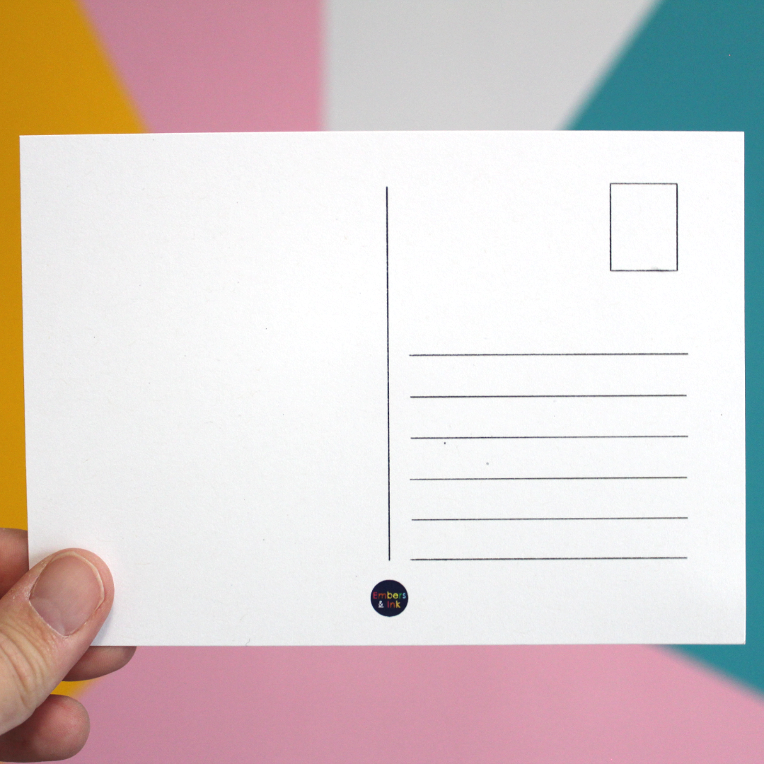 This foxy postcard shows an illustration of a fox by Emma Woodthorpe (the human behind Embers and Ink).